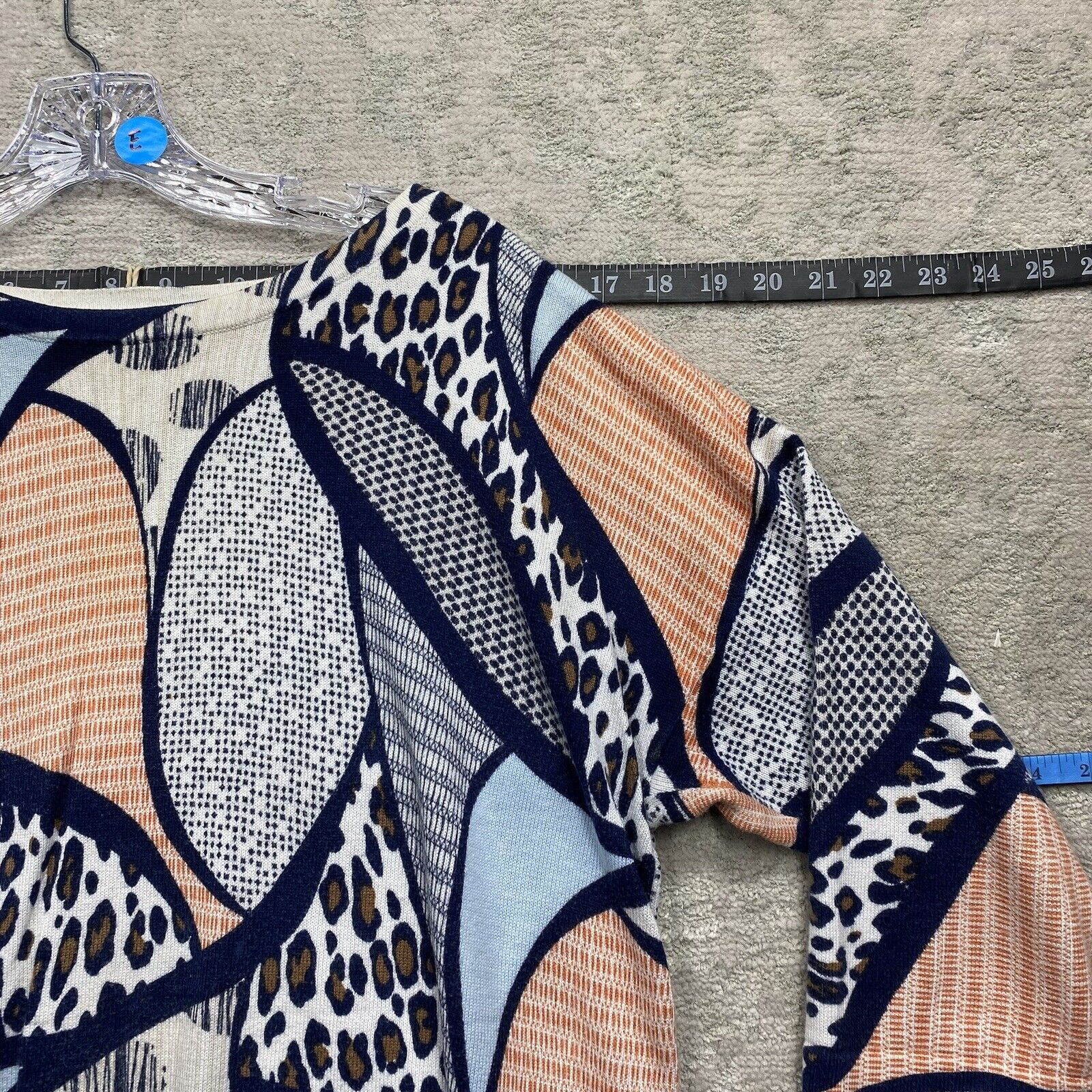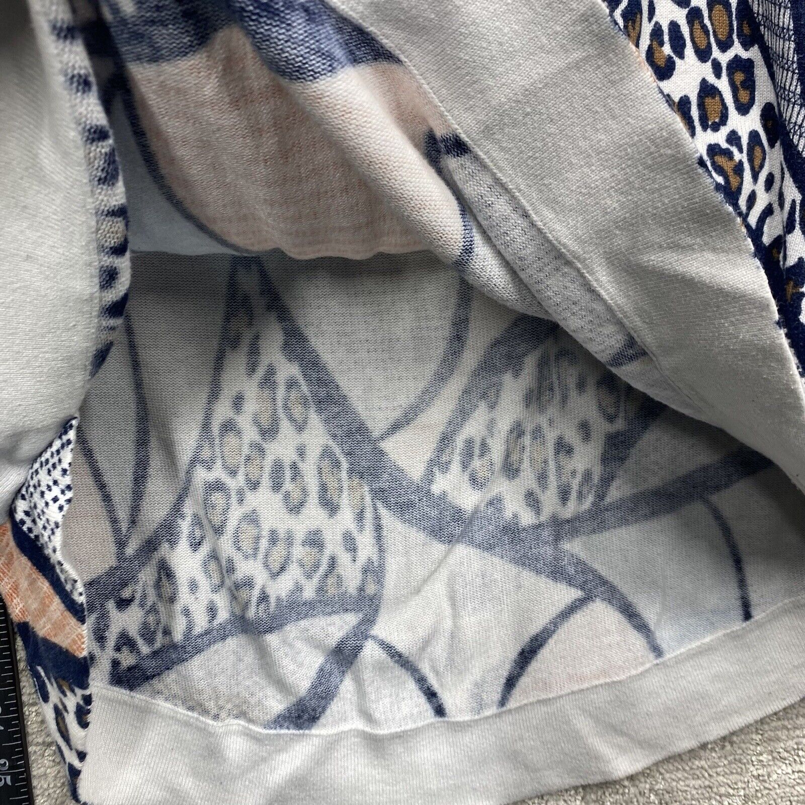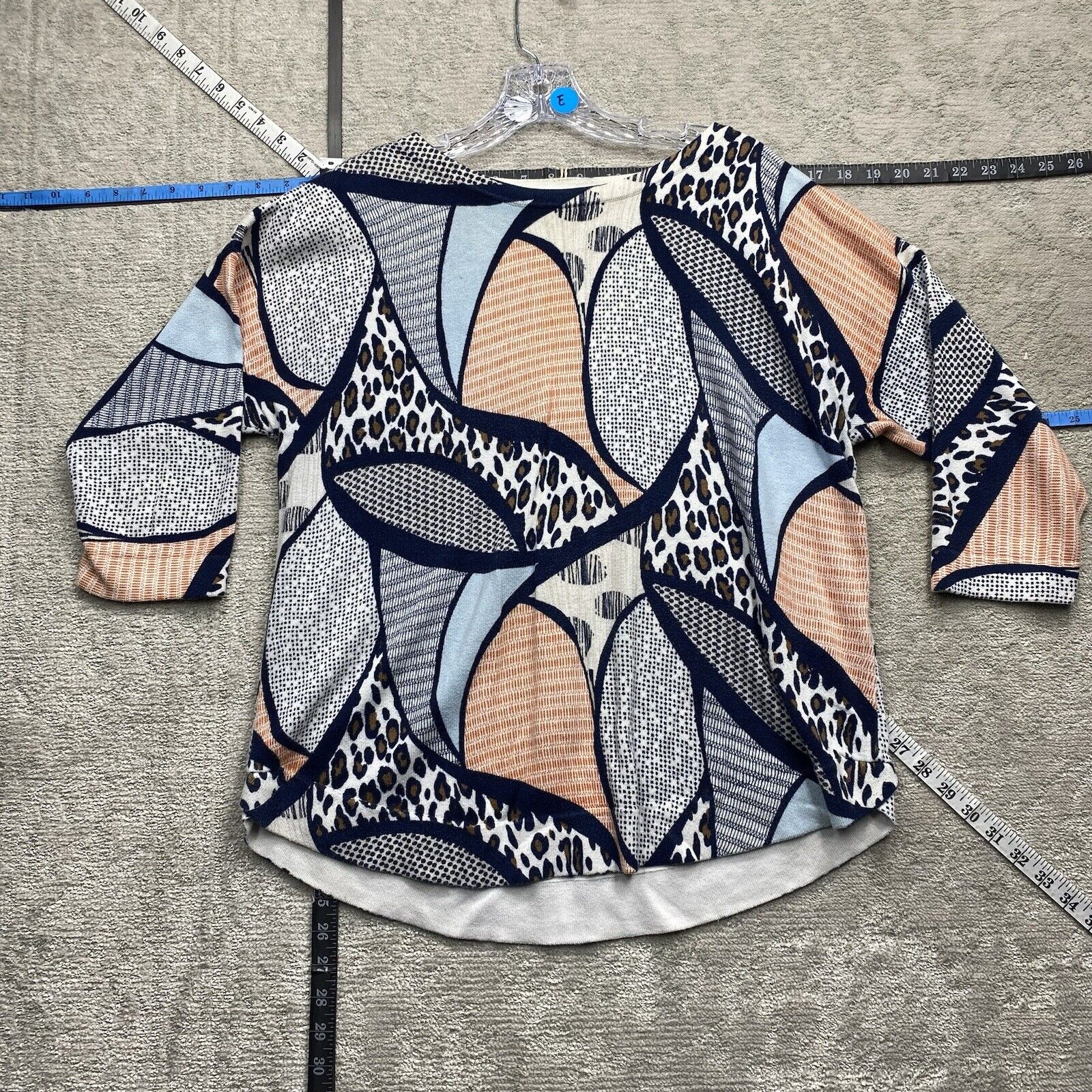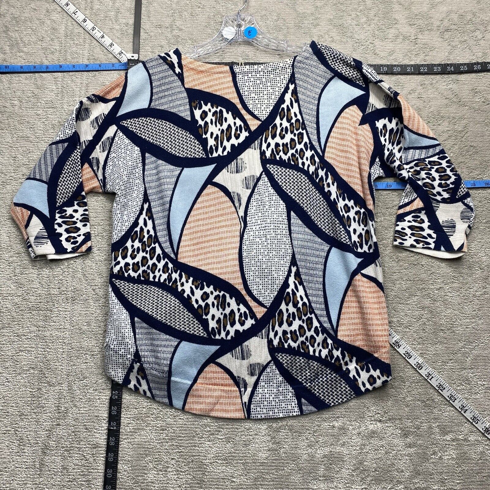 Chicos Blouse Women's Size Blue Short Sleeve Crew Neck Leopard Top