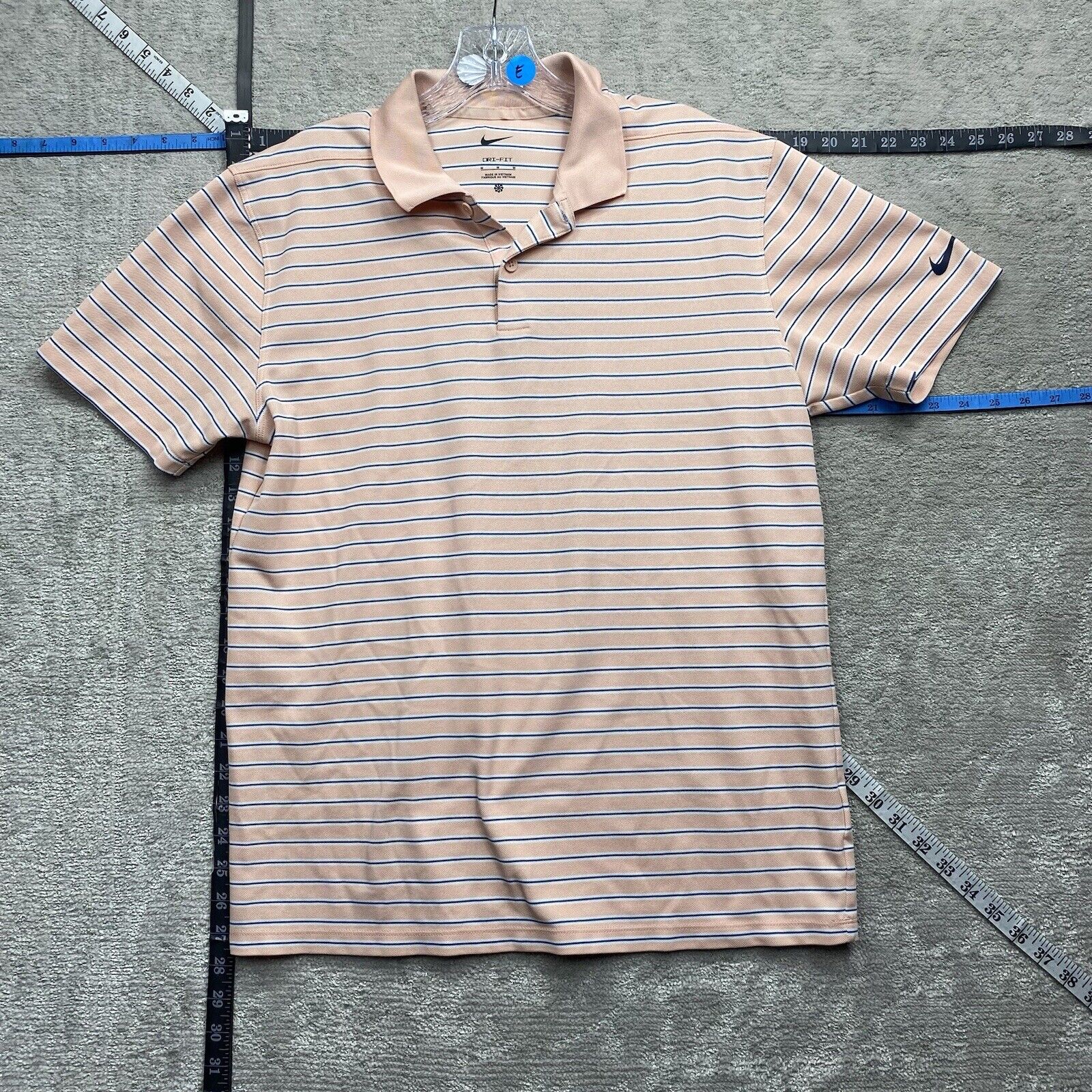 Nike Polo Shirt Mens Medium Pink Stripe Blue White Short Sleeve